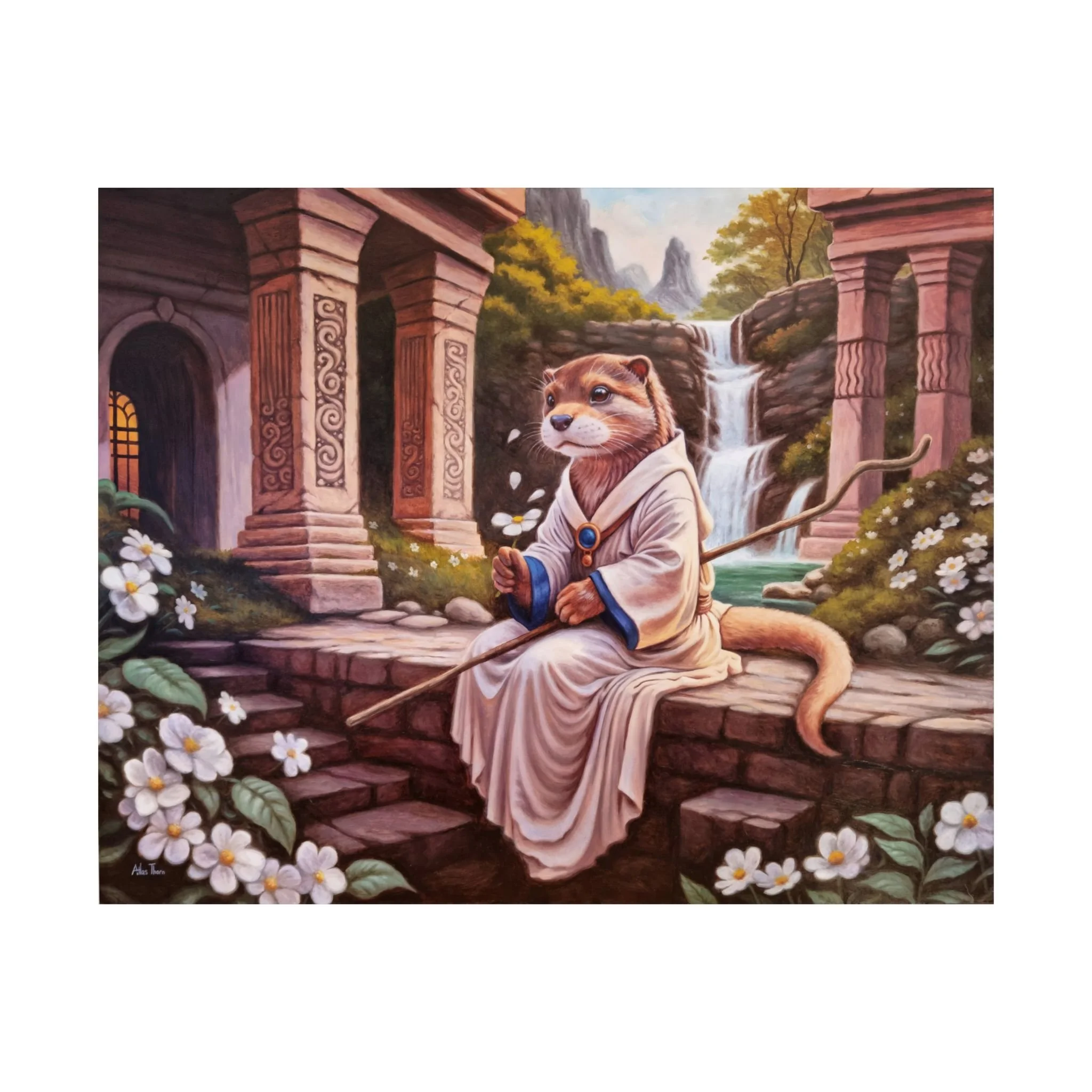 At the pools of the sacred falls, where mist clung to the stones like rain, Fern sat on the temple steps. The elder priests had said that water taught patience, that its strength flowed through all things, even him. He spent his days in quiet meditation, weaving simple healing charms from petals and dew drops, while listening to the rhythm of the world through the rushing of the falls. But sometimes, when the mists below shifted, Fern would glance down the long stone steps leading away from the temple and wonder. When the time came to leave, to walk into the woods and help those in need, would his magic be enough? Would he be enough? For now, he only closed his eyes, breathed in the mist, and tried to believe that patience was his strength.